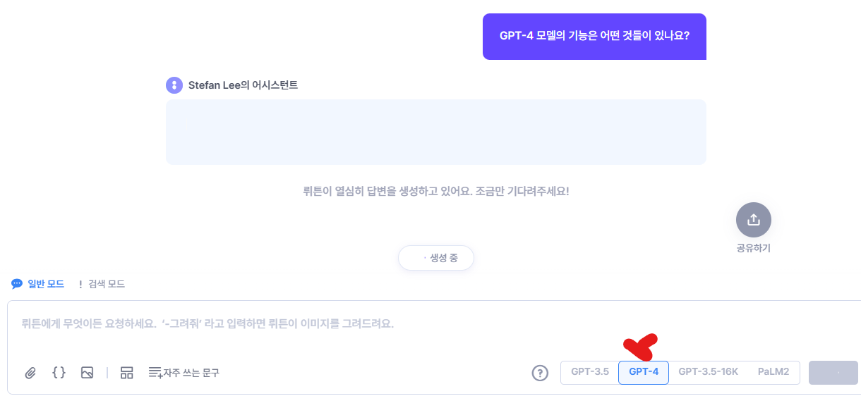 하지만, ChatGPT를 직접 사용하는 것보다 답변 생성이 굉장히 느리다는 단점이 있다.
